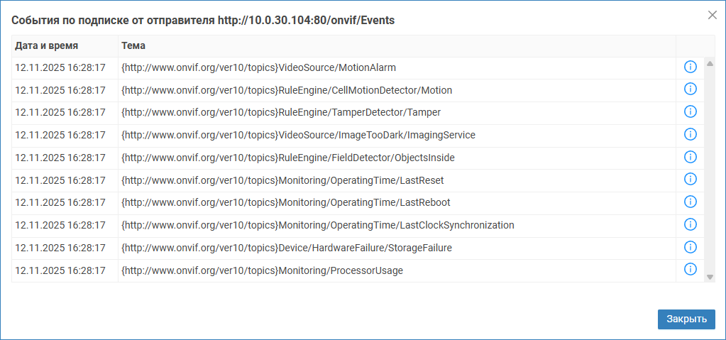 Если подписка успешно оформлена, Платформа НЕЙРОСС/ДеВизор начнут получать события от ONVIF-медиаисточника.