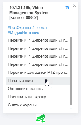- Управление медиаисточниками: начало/остановка записи, постановка и снятие с охраны;