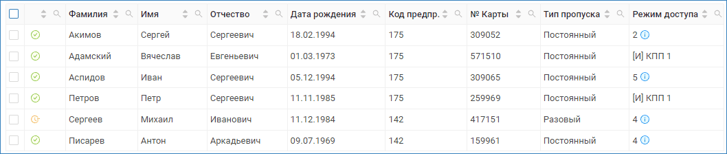 - Изменения времени последнего прохода по пропуску